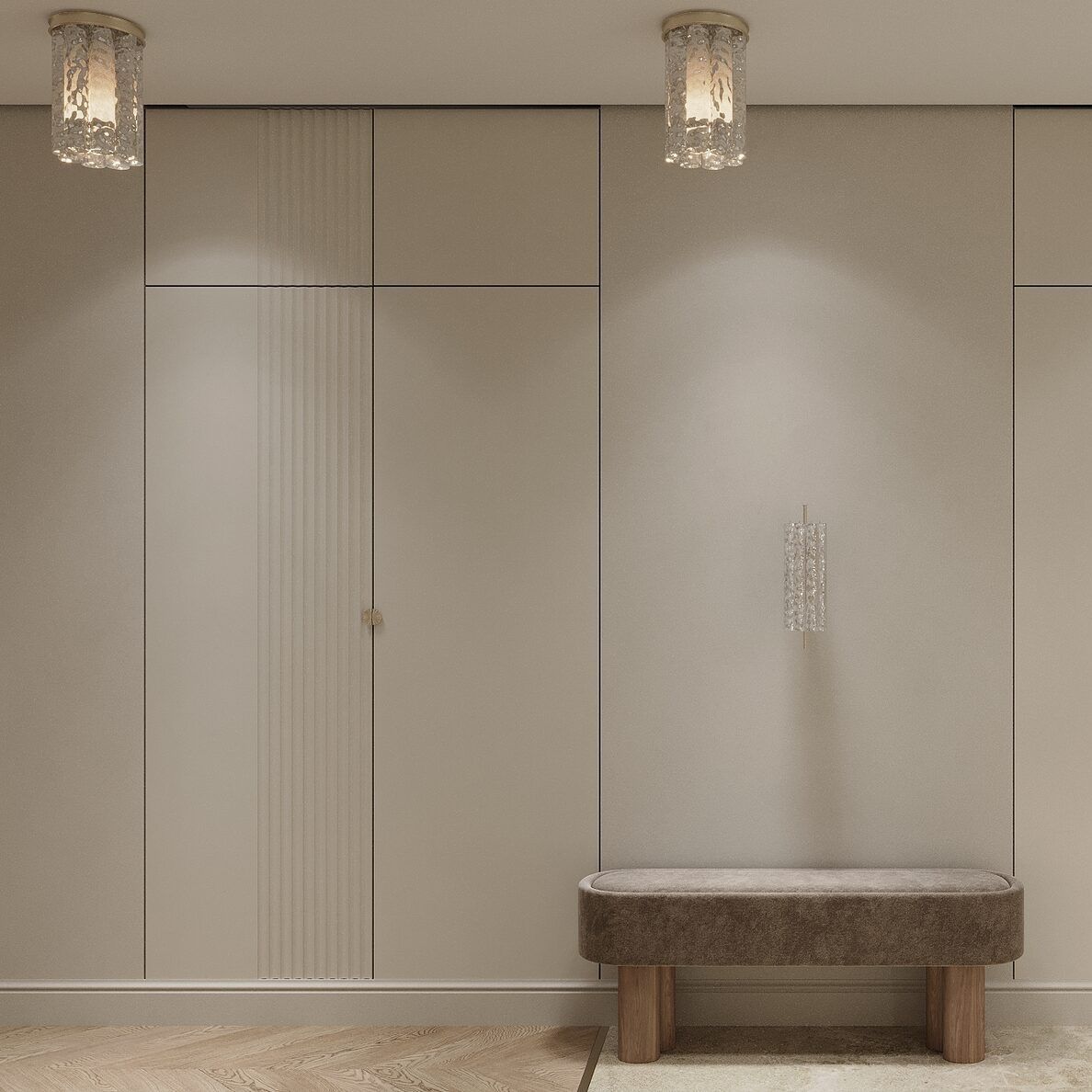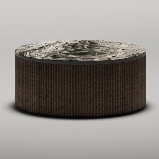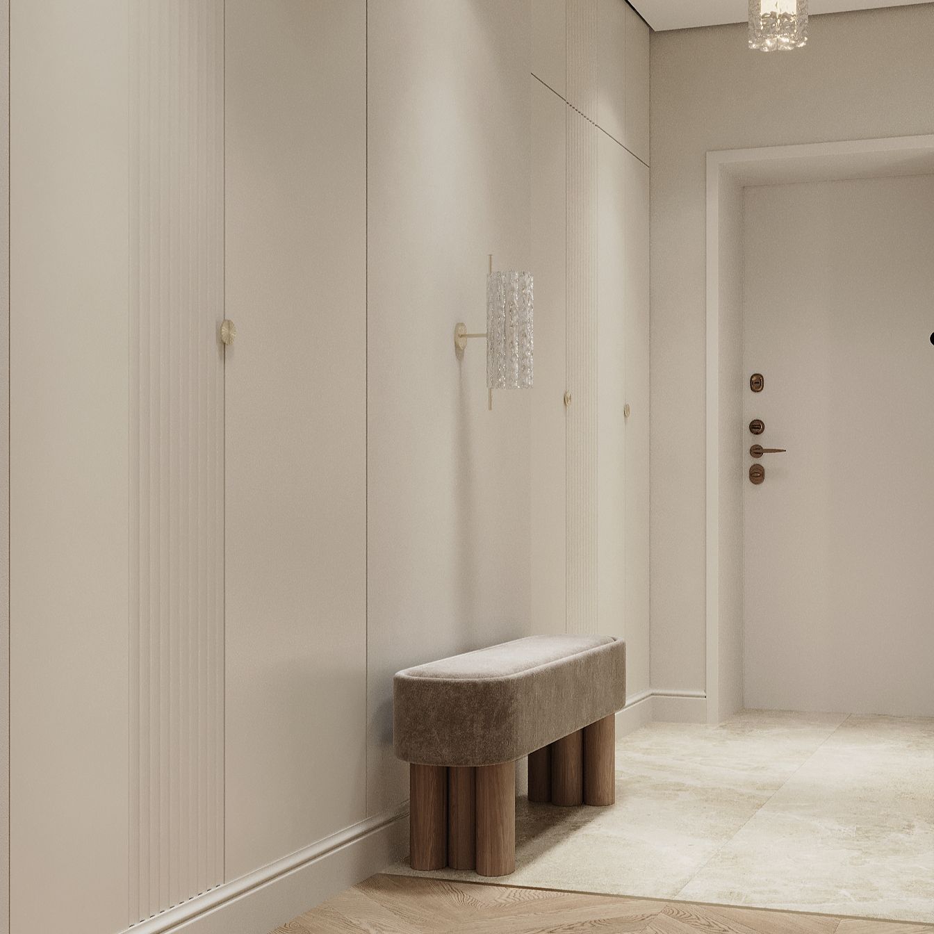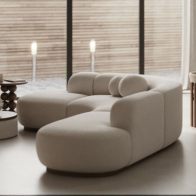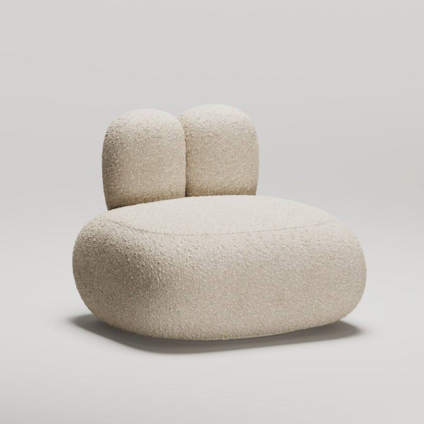 Обивка из трендовой ткани “букле”.